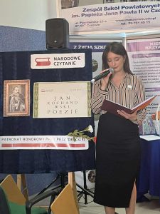 / Aktualności / Narodowe Czytanie Narodowe Czytanie w Zespole Szkół Powiatowych w Czerwinie W Zespole Szkół Powiatowych w Czerwinie odbyła się uroczystość w ramach ogólnopolskiej akcji Narodowego Czytania, której współorganizatorem była Gminna Biblioteka Publiczna w Czerwinie. Wydarzenie zgromadziło licznych gości – uczniów szkół podstawowych w Czerwinie i Piskach, dyrektorów placówek oświatowych oraz przedstawicieli instytucji i ośrodków działających na terenie gminy. Spotkanie miało charakter wspólnego, uroczystego obcowania z literaturą. Uczestnicy odczytali wybrane dzieła Jana Kochanowskiego – fraszki, pieśni oraz treny – przypominając ich ponadczasowe piękno, a także rolę poety z Czarnolasu w kształtowaniu polskiej kultury i języka literackiego. Narodowe Czytanie w Czerwinie stało się okazją nie tylko do popularyzowania klasyki literatury, lecz również do integracji lokalnej społeczności i podkreślenia znaczenia wspólnego pielęgnowania narodowego dziedzictwa.