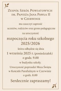 / Aktualności / Rozpoczęcie roku szkolnego 2025/2026 Zespół Szkół Powiatowych im. Papieża Jana Pawła II w Czerwinie